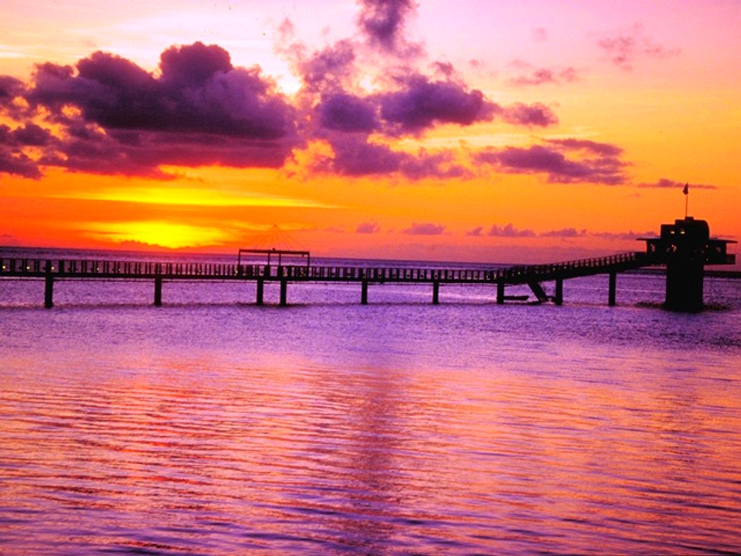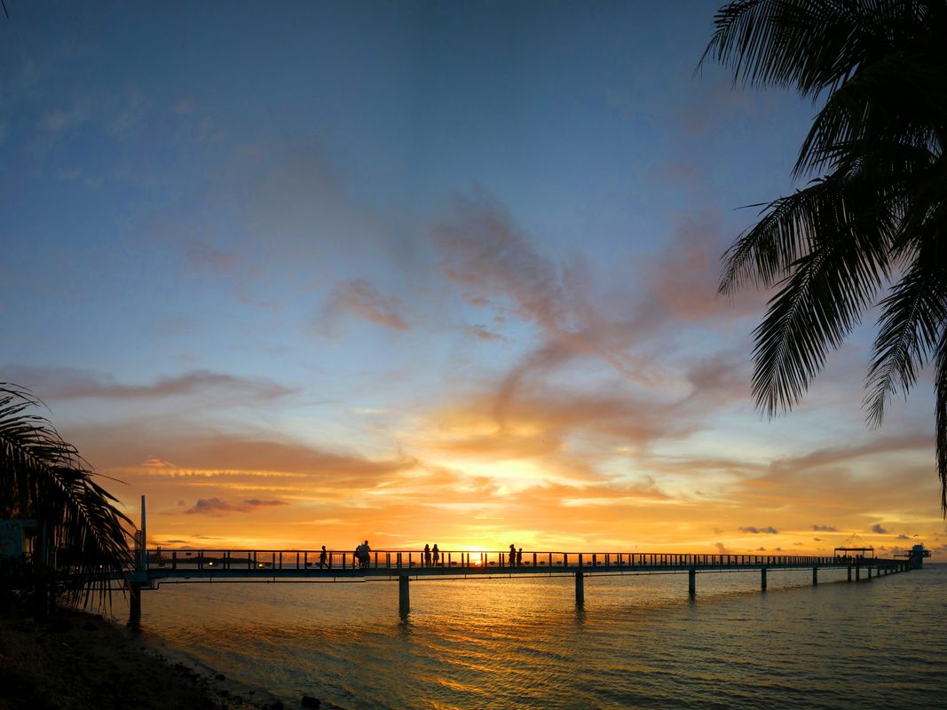 桟橋の先に沈む夕日がフォトジェニック!地元の人たちも多く訪れる絶好の撮影スポットで、グアム旅行の記念写真を撮ってみましょう。