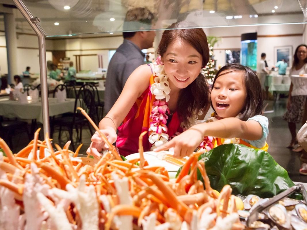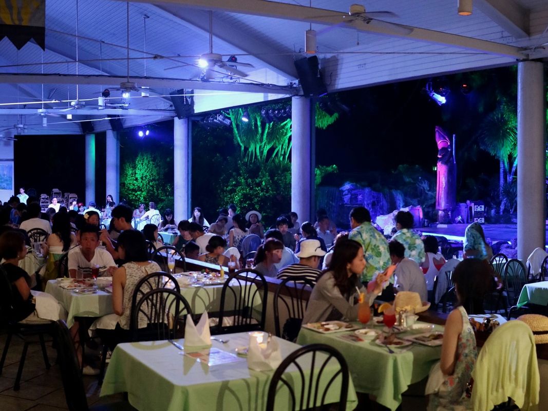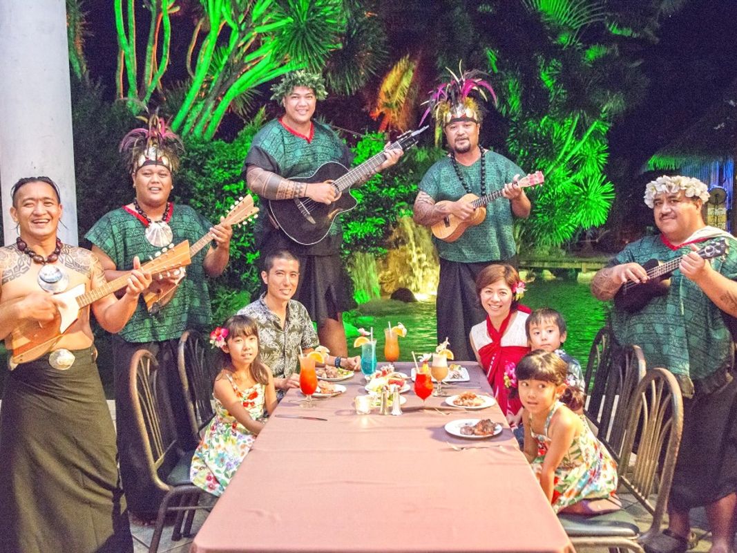 熱帯植物に囲まれたラグーンと滝に面したガーデン・レストランへ。潮風にそよぐヤシの葉と星空を見ながら、グルメディナーをお召し上がりいただける開放的なシアターレストランは、トロピカルムードいっぱい!ウクレレの生演奏を聴きながらディナーをお楽しみください。