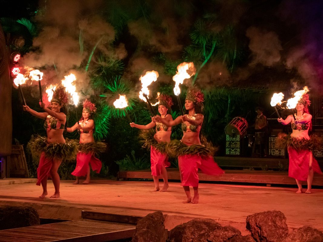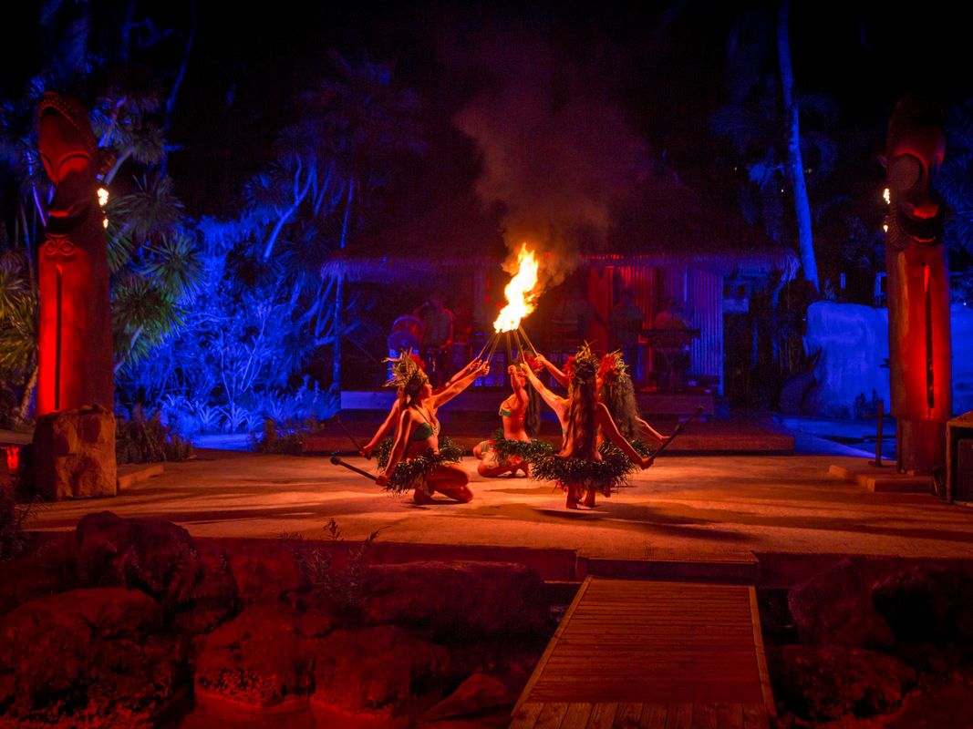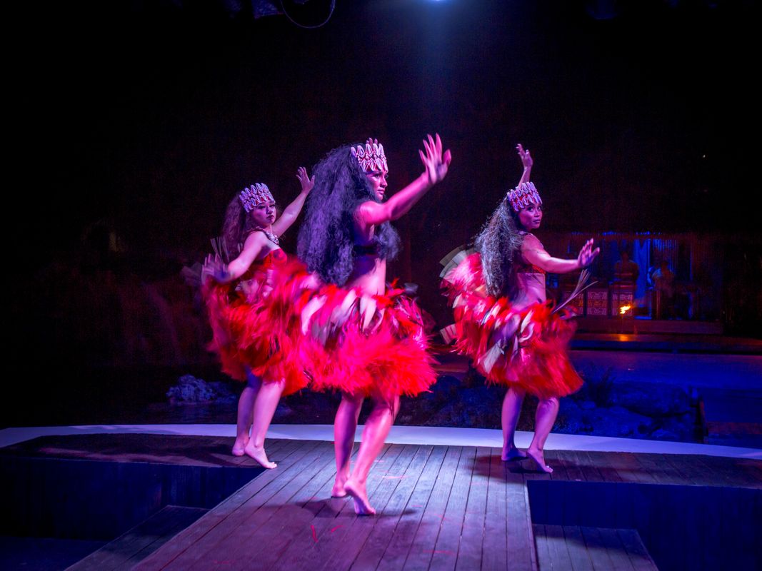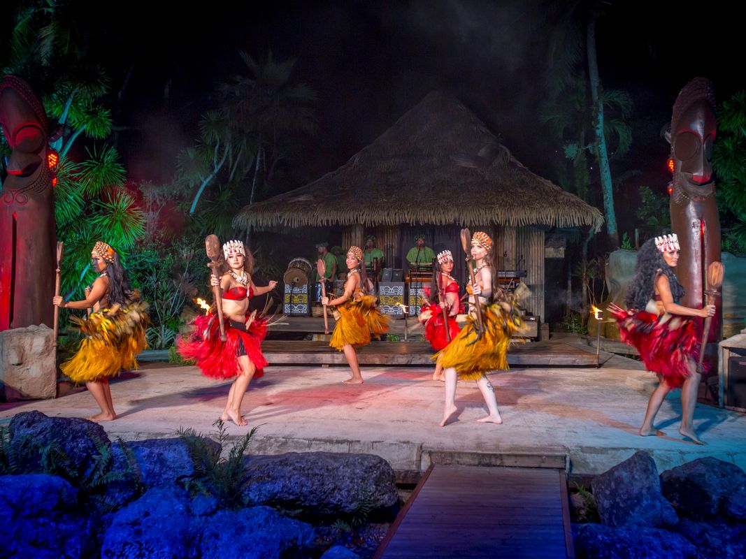 炸裂するドラムビートも全てライブ演奏!プロダンサー達の熱気ある演技と組み合わされた南の島ならではのショーエンターテイメントです。カップルダンス、戦いの太鼓、情感こもった女性達の舞曲と、目が離せないままプログラムが進行して行きます。